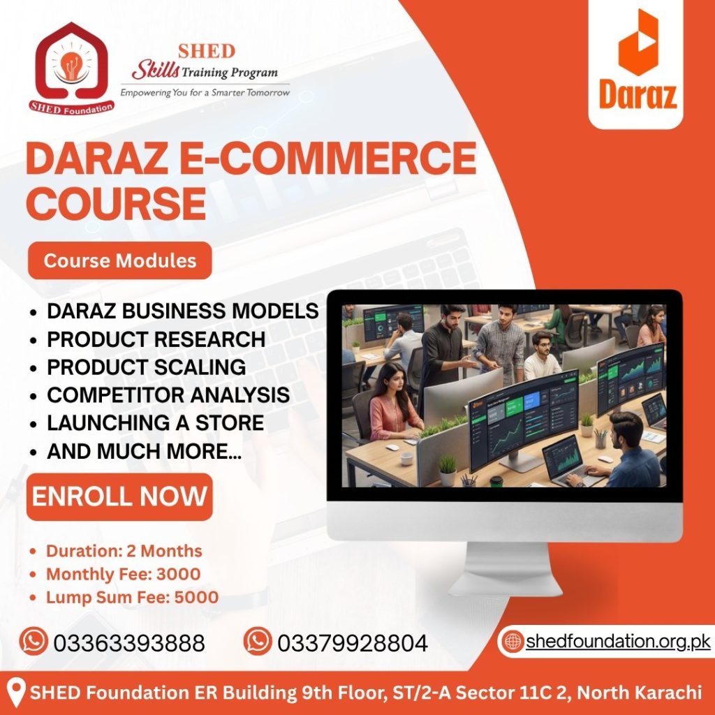 E-commerce is rapidly growing, and platforms like Daraz have created powerful opportunities for individuals to start their own online businesses. The Daraz E-Commerce Course by SHED is designed to teach you how to launch, manage, and scale your own online store on Daraz — even with zero prior experience.