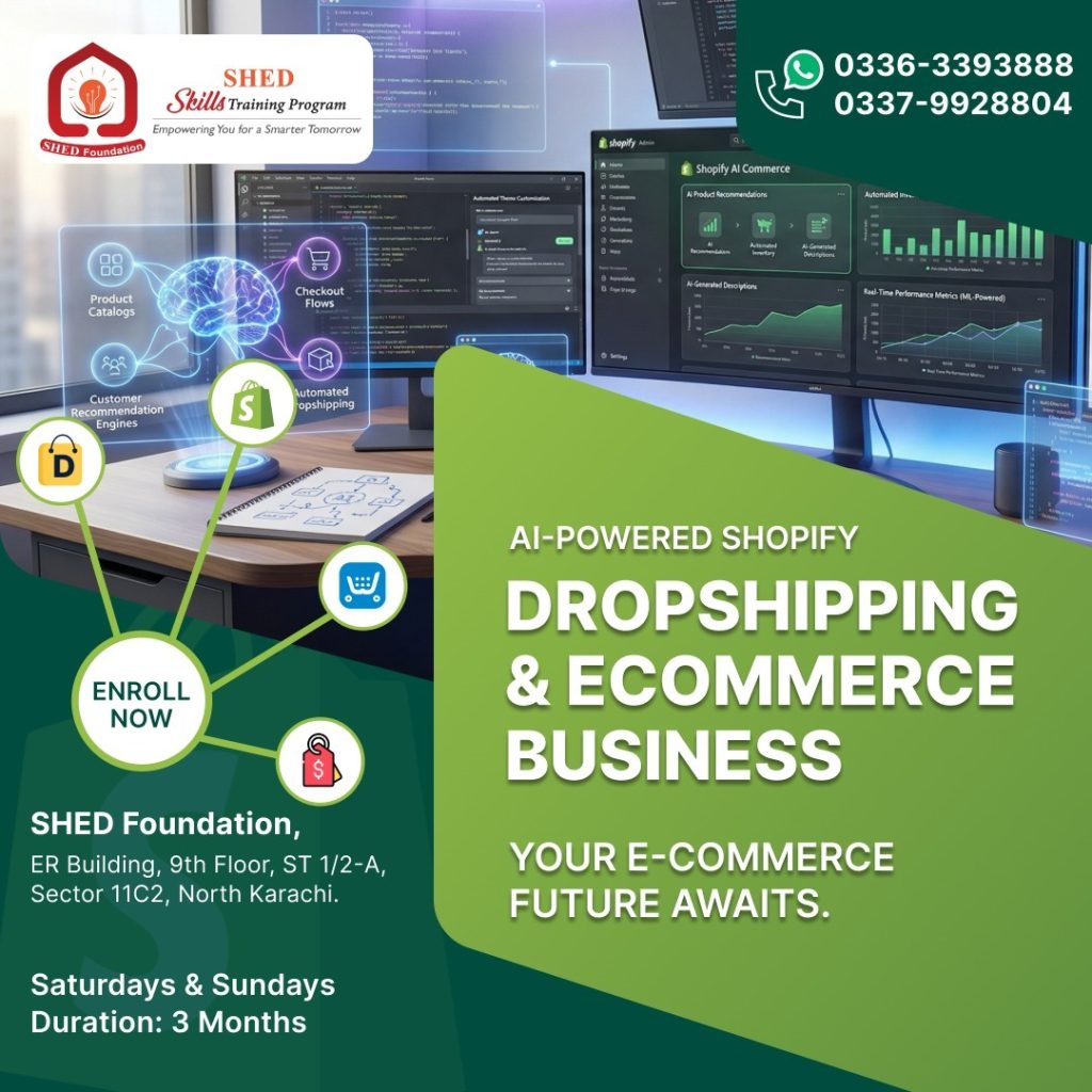 The future of online business is here. The Dropshipping & AI-Powered Shopify Course by SHED is designed to help you build a fully functional e-commerce business without managing inventory — using the power of Artificial Intelligence.