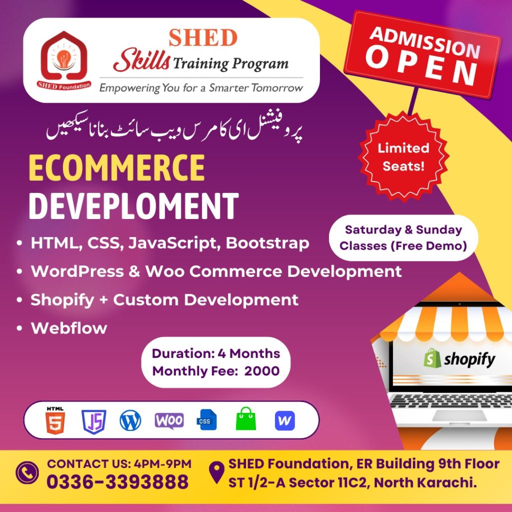 With the rapid growth of online businesses, the demand for skilled e-commerce developers is higher than ever. The E-Commerce Development Course by SHED is designed to equip you with the technical skills required to build, customize, and manage professional online stores.