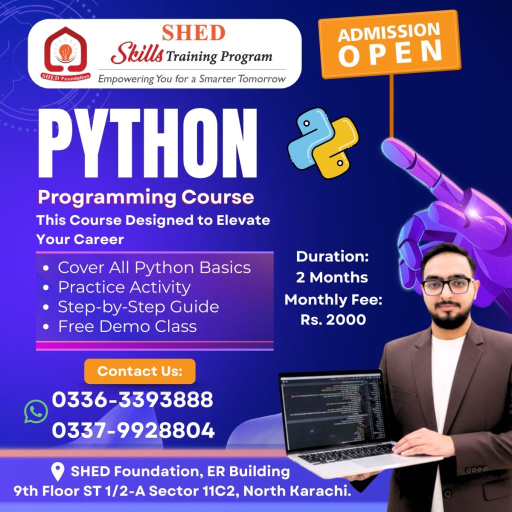 Python is one of the most in-demand and beginner-friendly programming languages in the world. The Python Programming Course by SHED is designed to help you build a strong foundation in coding and problem-solving, while opening doors to careers in software development, data science, automation, and more.